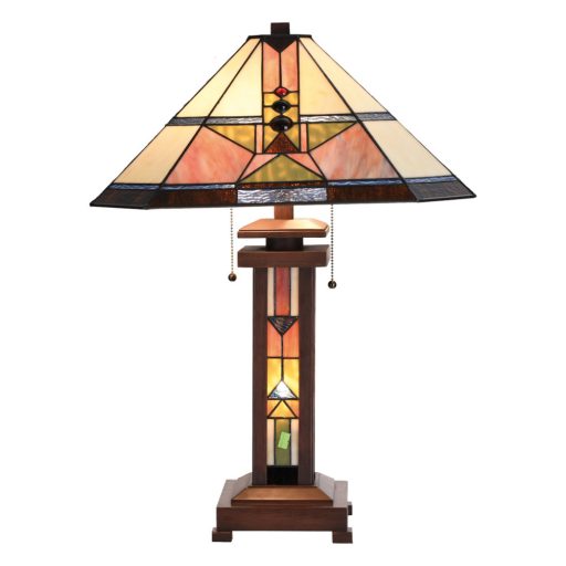 Bronz színű polyresin vázas Tiffany asztali lámpa Tiffany üveg búrával.