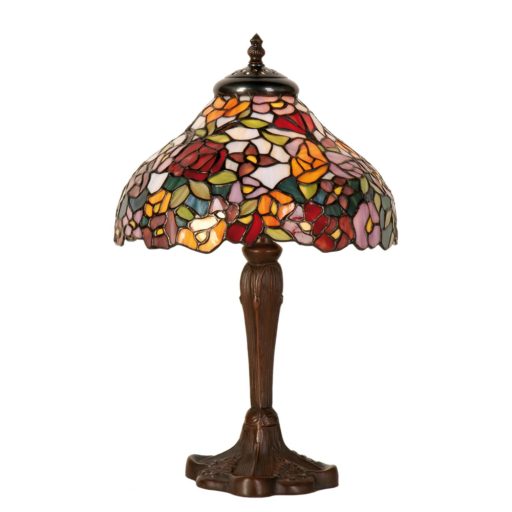 Bronz színű polyresin vázas Tiffany asztali lámpa Tiffany üveg búrával.
