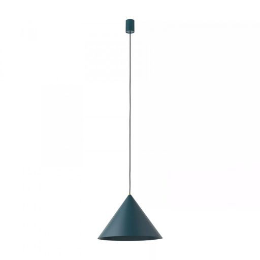 Modern stílusú, zöld színű, kúp formájú, 35cm széles, fém búrás függeszték GU10-es foglalattal. Fényforrást nem tartalmaz.