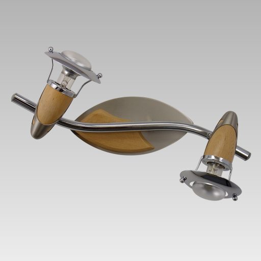 Nikkel színű fém vázas spotlámpa világos színű fa betéttel, állítható fejjel.