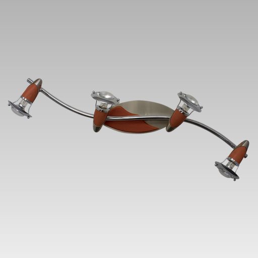 Nikkel színű fém vázas spotlámpa cseresznye színű fa betéttel, állítható fejjel.