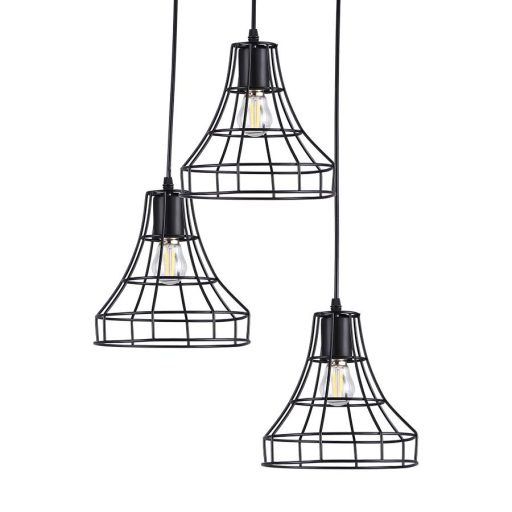 Fekete színű fém vázas függeszték fekete színű fém drót búrával. Dekor fényforrással mutat a legjobban.
