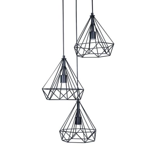 Fekete színű fém vázas függeszték fekete színű fém drót búrával. Dekor fényforrással mutat a legjobban.