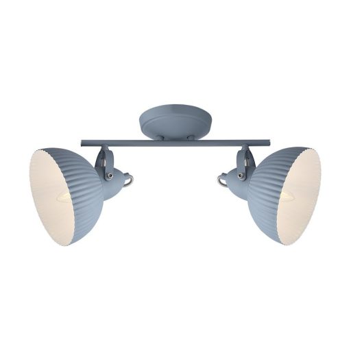 Szürke színű fém spot lámpa belül fehér színű búrával, állítható fejjel.