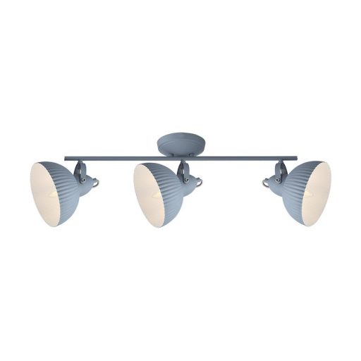 Szürke színű fém spot lámpa belül fehér színű búrával, állítható fejjel.