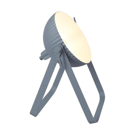 Szürke színű fém asztali lámpa belül fehér színű búrával, állítható fejjel.