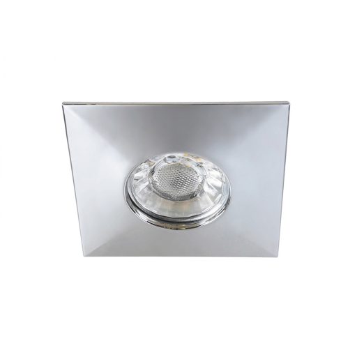 Modern megjelenésű ráépíthető és beépíthető lámpa energiatakarékos LED izzóval. 7,8 cm x 7,8 cm széles, króm színű fém lámpatest és áttetsző üveg lámpabúra. A falba beépített lámpatest IP20-as, a mennyezetből kilátszó rész IP44-es védettségű. A beépített LED izzó A+ energiaosztályú, teljesítménye 4W, amelyhez 350 lumen fényerő társul. A spotlámpa színhőmérséklete melegfehér (3000 Kelvin). Kiszerelés: 3 db/csomag