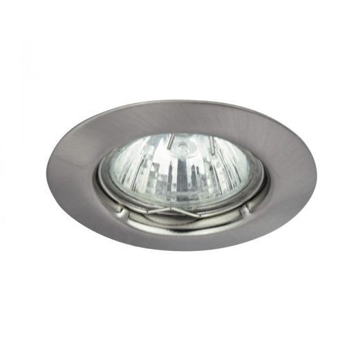 Szatinált króm színű, mennyezetbe építhető lámpa, fém vázzal.