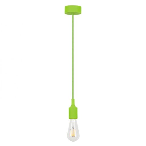 Indusztiális stílusú, búra nélküli függeszték, zöld színű szilikon vázzal. Dekor fényforrást ajánlunk hozzá a tökéletes öszzhatás végett.