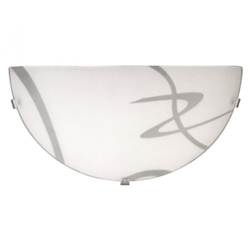 Modern stílusú fali lámpa, fém vázzal, fehér színű, átlátszó mintás üveg búrával.