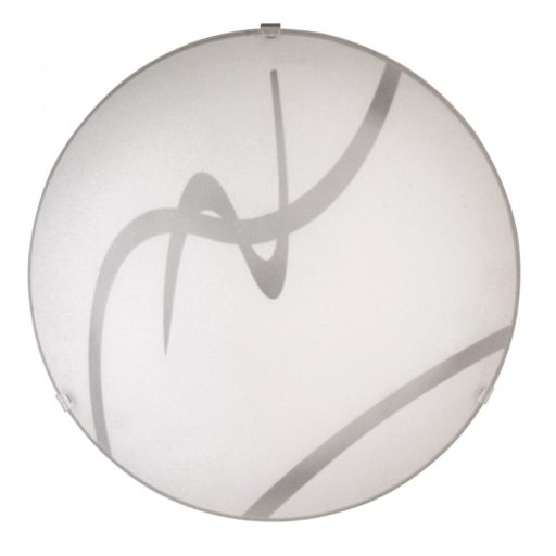 Modern stílusú mennyezti lámpa, fém vázzal, fehér színű, átlátszó mintás üveg búrával.