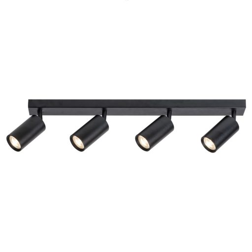 Fekete színű fém spot lámpa billethető fejjel, GU10-es foglalattal. A lámpa fényforrást nem tartalmaz.