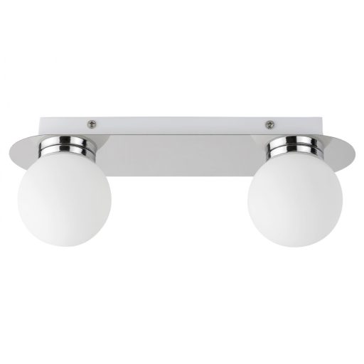 A modern formatervezésű, króm és fehér színkombinációban készült Becca kettes fürdőszobai mennyezeti lámpát azoknak ajánljuk, akik a gömbölyded formákat részesítik előnyben. A fürdőszobai lámpát felszerelhetjük a mosdó, illetve a tükör fölé, de akár a zuhanyfülke fölé is. A mennyezeti lámpa két darab, egyenként legfeljebb 28 W teljesítményű, energiatakarékos fényforrással használható, a foglalatok típusa G9. Amennyiben modern hatást szeretnénk elérni, válasszunk hozzá természetes fehér fényű fényforrást. A fémből és üvegből készült modell IP44-es védettséggel rendelkezik, ami garantálja, hogy legfeljebb 1 mm átmérőjű tárgyak behatolása ellen, valamint bármilyen irányból fröccsenő víz ellen védett. A mennyezeti lámpa teljes szélessége 300 mm. A Becca fürdőszobai lámpát fényforrás nélkül szállítjuk. MAX. 1,8cm széles és 5,8cm hosszú G9-es fényforrás fér a lámpába!