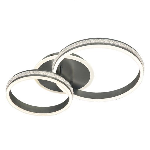A minimál stílusban készült Avalon mennyezeti lámpa nem mindennapi kiegészítője lehet nappalink, étkezőnk vagy hálószobánk berendezésének. A szálcsiszolt alumínium színű, fém lámpatestet fehér akrilbúrák teszik teljessé, a lámpa kerek dísztalp segítségével rögzíthető a mennyezetre. Az Avalon különlegességét a lámpát alkotó két gyűrű formájú elem adja, amelyet körben kristálydekor díszít. A mennyezeti lámpa beépített LED fényforrással rendelkezik, amelynek teljesítménye 50W, fényereje 3150lumen, élettartama pedig 20000óra. A 4000K színhőmérsékletű fényforrás természetes fehér fényt sugároz. Az Avalon méretei a következők: szélessége 65cm, mennyezettől mért távolsága 15cm, beépítési átmérője 19cm.