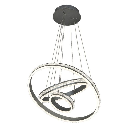 A minimál stílusban készült Avalon függeszték látványos kiegészítője lehet nappalink, étkezőnk vagy hálószobánk berendezésének. A szálcsiszolt alumínium színű, fém lámpatestet fehér akrilbúrák teszik teljessé, a lámpa kerek dísztalp segítségével rögzíthető a mennyezetre. Az Avalon különlegességét a lámpát alkotó eltérő méretű, gyűrű formájú elemek adják, amelyeket körben kristálydekor díszít. A mennyezeti lámpa beépített LED fényforrással rendelkezik, amelynek teljesítménye 75W, fényereje 4730lumen, élettartama pedig 20000óra. A 4000K színhőmérsékletű fényforrás természetes fehér fényt sugároz. Az Avalon függeszték méretei a következők: átmérője 60cm, belógása 130cm, beépítési átmérője 22cm.