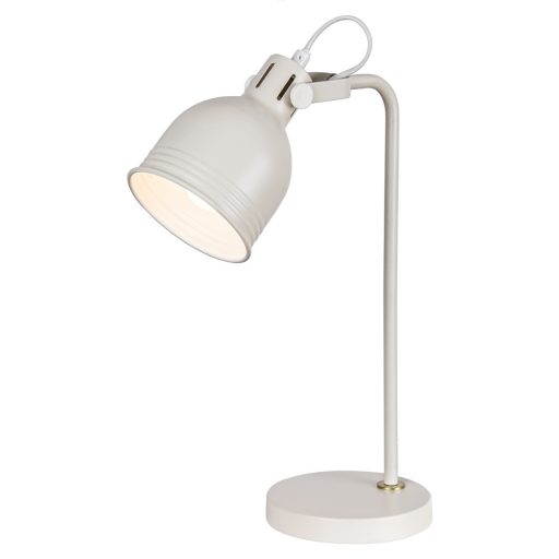 Bézs színű fém vázas asztali lámpa kívül bézs, belül fehér színű fém búrával, billethető fejjel, 1db E14-es foglalattal, vezetékre szerelt kapcsolóval. A lámpa fényforrást nem tartalmaz.