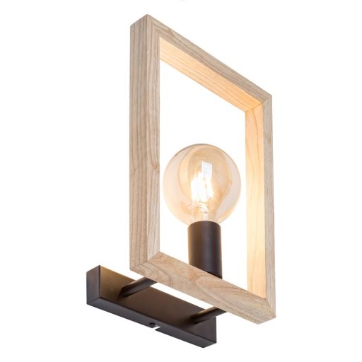 Fekete színű fém vázas fali lámpa natúr fa kerettel, E27-es foglalattal. A lámpa dekor fényforrással mutat a legjobban, ami nem tartozék.