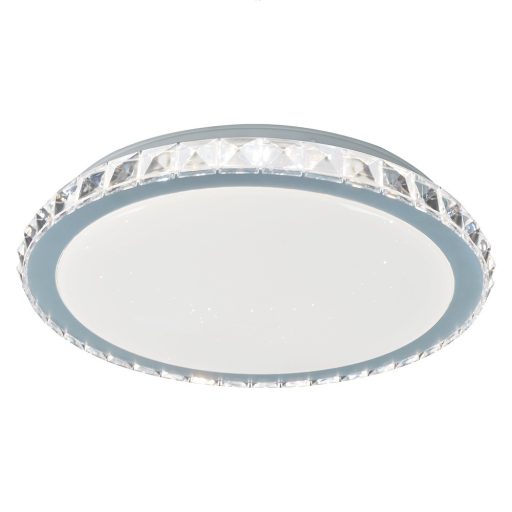 A csillogó effekttel ellátott, kerek Cressida mennyezeti lámpa praktikus, egyben elegáns választás lehet modern nappalinkba, étkezőnkbe vagy hálószobánkba. A fémből és akrilból készült, krómszínű lámpatestet fehér akrilbúra egészíti ki, a lámpa különlegességét a peremén körbefutó kristálydekor adja. A Cressida beépített LED fényforrással rendelkezik, amelynek a teljesítménye 24W, fényereje 1720lumen, élettartama pedig egészen rendkívüli: 50000óra! A fényforrás színhőmérséklete 4000K, ennek megfelelően természetes fehér fénnyel világít és tiszta, modern hatást kelt a szobában. A mennyezeti lámpa átmérője 40,5cm, mennyezettől mért távolsága 6,5cm. A Cressida lámpára