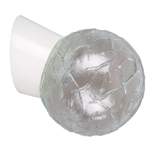 Klasszikus stílusú, Ufo fali lámpa, fehér színű műanyag vázzal, gömb alakú, rapcsos üveg búrával.
