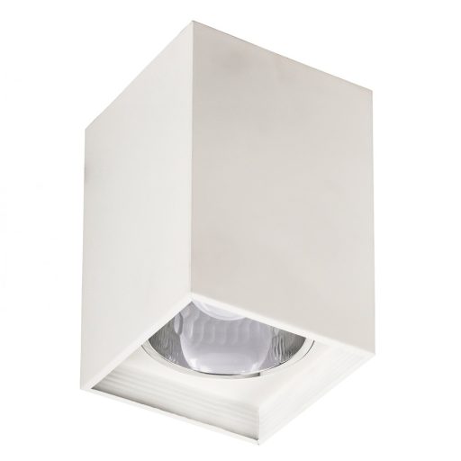 Szögletes, matt fehér, fém, mennyezeti lámpa.