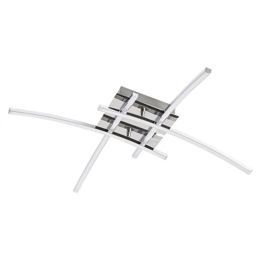Modern stílusú mennyezeti lámpa, króm színű fém vázzal, műanyag betétes búrával, beépített LED fényforrással.