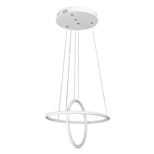 Minimalista stílusú függeszték beépített energiatakarékos LED fényforrással. 100 cm lelógású, 40 cm átmérőjű, fehér és króm színű, fém és műanyag kombinációjú szerkezet IP20-as védettséggel. A függesztékbe beépített LED fényforrás A energiaosztály besorolású és 37W teljesítmény mellett 2300 lumenes fényerőt, valamint 4000 Kelvines, természetes fehér színű fényt biztosít. A lámpatestben a fényforrás nem cserélhető.
