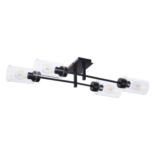 Matt fekete színű fém vázas mennyezeti lámpa áttetsző üveg búrával, E27-es foglalattal. A lámpa dekor fényforrással mutat a legjobban, ami nem tartozék.