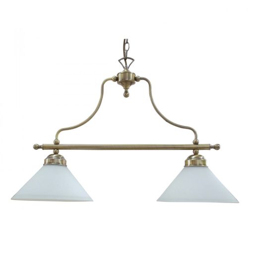 Klasszikus stílusú függeszték, bronz színű fém vázzal, fehér színű üveg búrával.