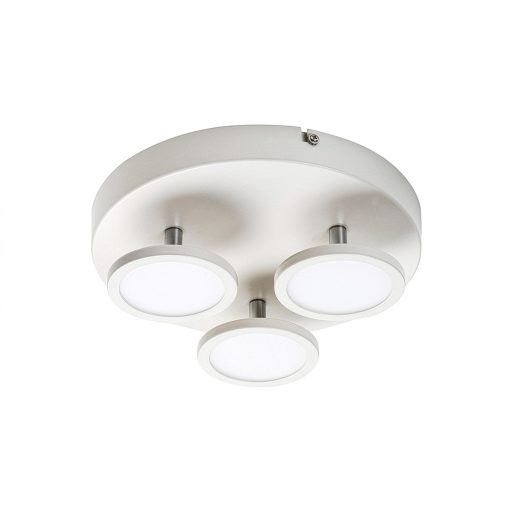 Minimalista stílusú mennyezeti lámpa beépített energiatakarékos LED fényforrásokkal. 25 cm átmérőjű, matt fehér és króm színű, fém és műanyag kombinációjú szerkezet IP20-as védettséggel. A lámpatestben elhelyezett LED fényforrások A+ energiaosztály besorolásúak. 3x 6W teljesítmény mellett 3x 420 lumenes fényerőt, továbbá 4000 Kelvines, természetes fehér színű fényt adnak. A lámpatestben a fényforrások nem cserélhetők.