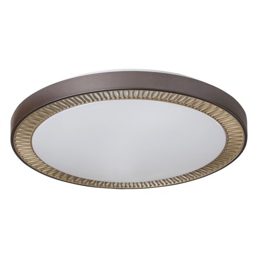 Barna színre festett fém vázas mennyezeti lámpa arany dekoros, fehér színű akril búrával, beépített LED fényforrással. A lámpához távirányító tartozik, segítségével állítható a lámpa fényereje és színhőmérséklete, továbbá a lámpa memória és éjszakai fény funkcióval is rendelkezik.