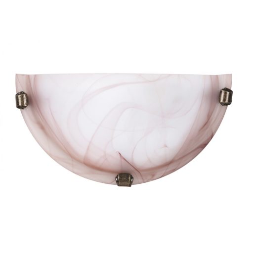 Klasszikus stílusú fali lámpa, fém vázzal, dohány színű alabástrom üveg búrával, bronz színű búra rögzítő elemekkel.