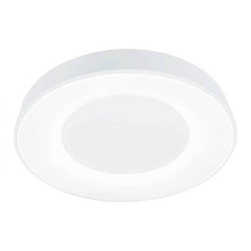 Fehér színű fém vázas mennyezeti lámpa fehér színű műanyag betétes búrával, beépített LED fényforrással, plusz indirekt világítással. A lámpához távirányító tartozik, segítségével állítható a lámpa fényereje és színhőmérséklete, továbbá a lámpa memória, időzítő és éjszakai fény funkcióval is rendelkezik.