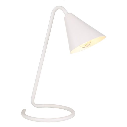 Az indusztriális stílusban készült Monty asztali lámpát elsősorban a hálószobába vagy a dolgozószobába ajánljuk. A fehér színű lámpa anyaga teljes egészében fém, különlegessége pedig az alul kör alakban meghajlított szár, amely a hagyományos dísztalp helyett biztosít stabil megtámasztást a lámpának. A fehér búra lefelé szélesedő, gúla formájú. A Monty egy darab, legfeljebb 40W teljesítményű fényforrással használható, a foglalat típusa E14. Ha a hálószobában helyezzük el a lámpát, meleg fehér fényű fényforrást ajánlunk hozzá, míg a dolgozószobában praktikusabb lehet egy természetes fehér fényű fényforrás használata. Az asztali lámpa szélessége 27cm, magassága 34,5cm. Ezt a modellt fényforrás nélkül szállítjuk.