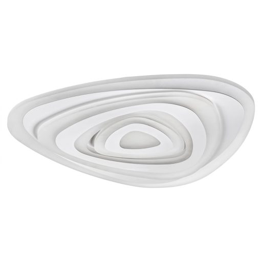 Fehér színű fém vázas mennyezeti lámpa akril búrával beépített LED fényforrással. A lámpához távirányító tartozik, segítségével állítható a lámpa fényereje és színhőmérséklete, továbbá éjszakai fény funkcióval is rendelkezik.