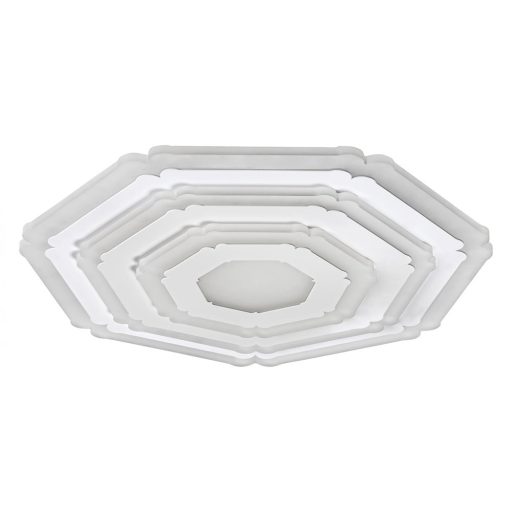 Fehér színű fém vázas mennyezeti lámpa akril búrával beépített LED fényforrással. A lámpához távirányító tartozik, segítségével állítható a lámpa fényereje és színhőmérséklete, továbbá éjszakai fény funkcióval is rendelkezik.