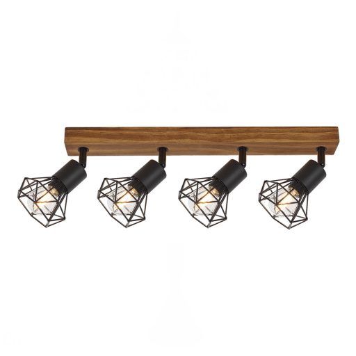 Az indusztriális stílusban készült Zeus négyes spotlámpát a lakás számos helyiségébe ajánljuk: felszerelhetjük a nappaliban, az étkezőben, a konyhában vagy éppen a hálószobában. A fémből és fából készült lámpa hosszúkás, szögletes, tölgy dísztalp segítségével rögzíthető a falra. A jellegzetes formájú, rácsos búrák matt fekete színben, fémből készülnek. A Zeus négy darab, egyenként legfeljebb 40W teljesítményű fényforrással használható, a foglalatok típusa E14. Ízlésünktől és attól függően, hogy a lakás melyik helyiségében szereljük fel a lámpát, választhatunk hozzá meleg vagy természetes fehér fényű fényforrásokat. Az állítható lámpafejeknek köszönhetően ezzel a modellel hatékonyan bevilágíthatunk egy tágasabb helyiséget is. A Zeus négyes spot lámpa méretei a következők: szélessége 66,5cm, magassága 15cm, faltól mért távolsága 15cm. Ezt a modellt fényforrások nélkül szállítjuk.