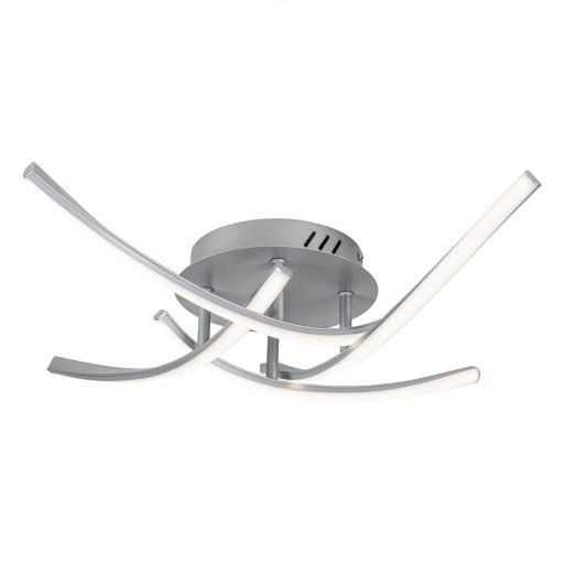 Ezüst színű fém vázas mennyezeti lámpa fehér színű műanyag búrával, 30W természetes fehér színhőmérséketű beépített LED fényforrással.