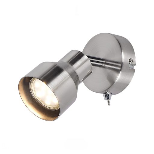 A modern stílusú Blake spotlámpa a lakás számos helyiségébe jó választás lehet: felszerelhetjük a nappaliban, a hálószobában, de az étkezőben vagy akár a konyhában is. A teljes egészében fémből készült, szatinkróm színű lámpa kerek dísztalp segítségével rögzíthető a falra. A Blake egy darab, legfeljebb 50W teljesítményű fényforrással használható, a foglalat típusa GU10. Ízlésünktől és a felszerelés helyétől függően választhatunk hozzá meleg vagy természetes fehér fényű fényforrást. A spot lámpa a dísztalp alulsó részén elhelyezett kapcsolóval működtethető. A fali lámpa méretei a következők: szélessége 8,5cm, magassága 13cm, faltól mért távolsága 9cm, beépítési átmérője 8cm. Ezt a modellt fényforrás nélkül szállítjuk..