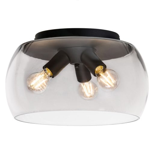 Matt fekete színű fém vázas mennyezeti lámpa áttetsző, füstös üveg búrával, E27-es foglalattal. A lámpa dekor fényforrással mutat a legjobban, ami nem tartozék.