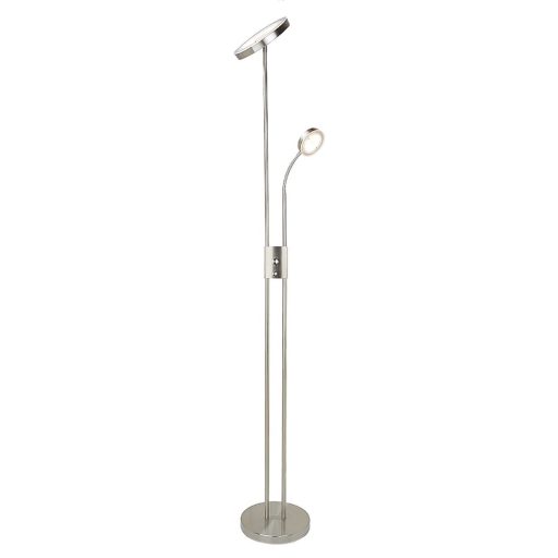 A modern stílusú Ophus állólámpa igazán trendi darabja lehet nappalink, hálószobánk vagy a dolgozószoba berendezésének. A szatinkróm színben, fémből készült modellt átlátszó üvegbúrák és kerek dísztalp egészíti ki. Mindkét tányér formájú lámpafej beépített LED fényforrással rendelkezik: a nagyobb átmérőjű esetében a fényforrás teljesítménye 18,5W, fényereje 1750lumen, az olvasólámpa funkciót betöltő lámpafej fényforrásának teljesítménye 4,5W, fényereje pedig 360lumen. Mindkét fényforrás élettartama 20000óra, színhőmérsékletük 3000K, vagyis meleg fehér fényt sugároznak. Az állólámpa kapcsoló segítségével dimmelhető, azaz fényereje tetszés szerint állítható. Az Ophus szélessége 25,5cm, magassága 180cm.