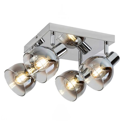 A modern stílusú Tarien négyes mennyezeti spotlámpa a lakás számos helyiségébe jó választás lehet: felszerelhetjük a nappaliban, a hálószobában, de az étkezőben vagy akár a konyhában is. A krómszínű, fémből készült lámpatestet színezett üvegből készült, ernyő formájú búrák egészítik ki. A Tarien nagyméretű, szögletes dísztalp segítségével rögzíthető a mennyezetre. A lámpa négy darab, egyenként legfeljebb 40W teljesítményű fényforrással használható, a foglalatok típusa E14. Ízlésünktől és a felszerelés helyétől függően választhatunk hozzá meleg vagy természetes fehér fényű fényforrásokat. Az állítható lámpafejeknek köszönhetően a spot lámpa fényét igény szerint irányíthatjuk és hatékonyan bevilágíthatjuk vele a szobát. A Tarien mérete 22x22mm, mennyezettől mért távolsága 15cm. Ezt a modellt fényforrások nélkül szállítjuk..