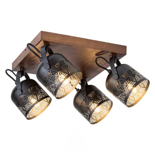 Az indusztriális stílus képviselői közé tartozó Rotem négyes spotlámpa modern otthonunk berendezésének jellegzetes darabja lehet. A Rábalux saját tervezésű modelljét elsősorban a nappaliba, az étkezőbe vagy a hálószobába ajánljuk, de felszerelhetjük akár a konyhában is. A fémből és fából készült Rotem jellegzetes mintázatú, harang alakú, matt fekete búrákkal és textilkábelekkel egészül ki, valamint nagyméretű, szögletes diófa dísztalp segítségével rögzíthető a mennyezetre. A lámpa négy darab, egyenként legfeljebb 40W teljesítményű fényforrással használható, a foglalatok típusa E14. A mozgatható lámpafejeknek köszönhetően ezzel a modellel kényelmesen bevilágíthatunk egy tágasabb helyiséget is. A négyes spot lámpa mérete 44x44cm, egy-egy búra átmérője 11cm, a lámpa mennyezettől mért távolsága 20cm, beépítési átmérője 30cm. Ezt a modellt fényforrások nélkül szállítjuk.