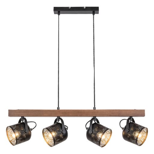 Az indusztriális stílus képviselői közé tartozó Rotem négyes függeszték modern otthonunk berendezésének jellegzetes darabja lehet. A Rábalux saját tervezésű modelljét elsősorban a nappaliba, az étkezőbe vagy a hálószobába ajánljuk. A fémből és fából készült Rotem jellegzetes mintázatú, harang alakú, matt fekete búrákkal és textilkábelekkel egészül ki, valamint hosszúkás, szögletes dísztalp segítségével rögzíthető a mennyezetre. A lámpafejek a kábelekkel a dísztalphoz rögzített vízszintes, diófa tartórúdon helyezkednek el sorban, egymás mellett. A lámpa négy darab, egyenként legfeljebb 40W teljesítményű fényforrással használható, a foglalatok típusa E14. A mozgatható lámpafejeknek köszönhetően ezzel a modellel kényelmesen bevilágíthatunk egy tágasabb helyiséget is. A négyes függeszték méretei a következők: szélessége 75cm, egy-egy búra átmérője 11cm, a lámpa belógása 120cm. Ezt a modellt fényforrások nélkül szállítjuk.