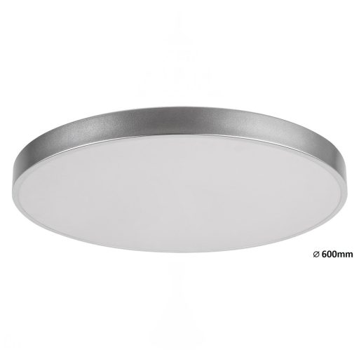 Ezüst színű fém keretes mennyezeti lámpa fehér színű műanyag búrával, beépített LED fényforrással. A lámpához távirányító tartozik, mellyel állítható a LED fényereje, színhőmérséklete. A lámpa továbbá memória, időzítő és éjszakai fény funkcióval is rendelkezik.