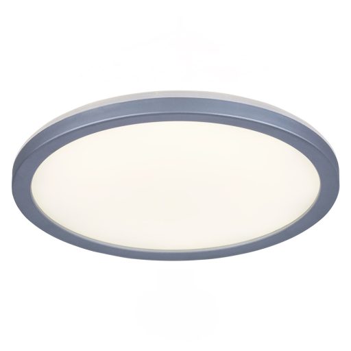 Ezüst keretes, fehér színű műanyag mennyezeti lámpa bépített természetes fehér fényű LED fényforrással, plusz felfelé (indirekt) világítással, IP44-es védelemmel.