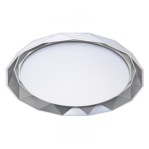 Fehér és szürke színű fém és műanyag anyagokból készült mennyezeti lámpa meleg fényű beépített LED fényforrással. A lámpa fényereje fali kapcsoló segítségével 3 lépcsőben(10%,40%,100%) szabályozható, illetve indirekt/háttér világítással is rendelkezik.
