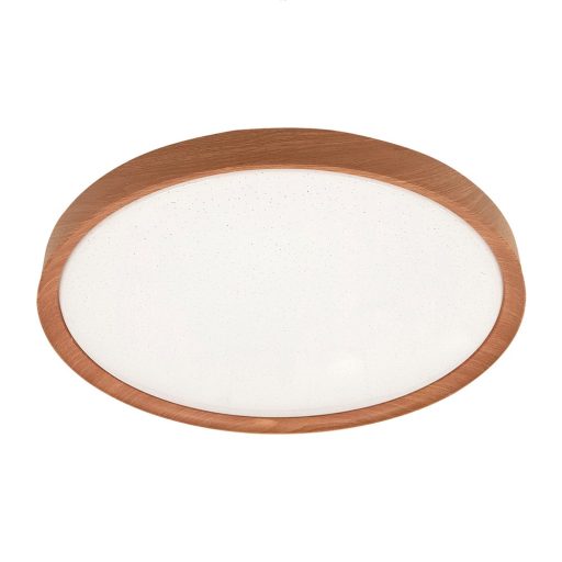 A skandináv stílusú Sherwood mennyezeti lámpa egyszerű dizájnja extra funkciók egész tárházát rejti. Kitűnő választás lehet a nappaliba, az étkezőbe vagy a hálószobába. A bükkszínű, fém lámpatest csillogó effekttel ellátott, fehér műanyagbúrával egészül ki. A lámpa beépített LED fényforrása 50W-os teljesítménnyel, 4000lumenes fényerővel és 25000órás élettartammal rendelkezik. A fényforrás színhőmérséklete 3000-6500K között tetszés szerint állítható távirányító vagy fali kapcsoló segítségével, azaz beállíthatunk meleg, természetes vagy hideg fehér fényt. Ezenkívül a lámpa távirányítóval dimmelhető, azaz fényereje is változtatható. További extrák az időzítő és az éjszakai fény funkció, amelyek ugyancsak távirányítóval állíthatók. A Sherwood átmérője 49cm, mennyezettől mért távolsága 7cm. Erre a sokoldalú lámpára