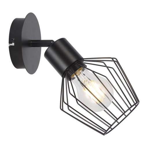Fekete színű fém vázas spot lámpa fémrács búrával, állítható fejjel.