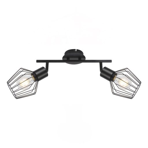 Fekete színű fém vázas spot lámpa fémrács búrával, állítható fejjel.