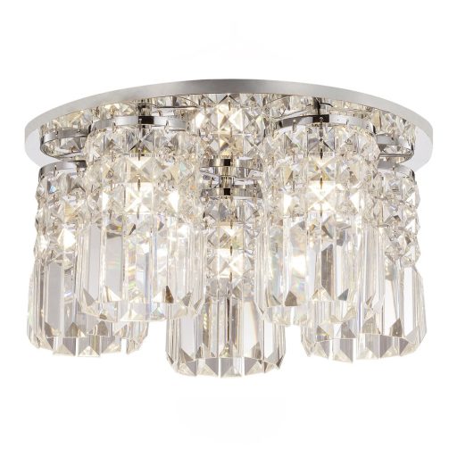 Króm színű fém vázas elegáns mennyezeti lámpa átlátszó üveg kristály búrával.